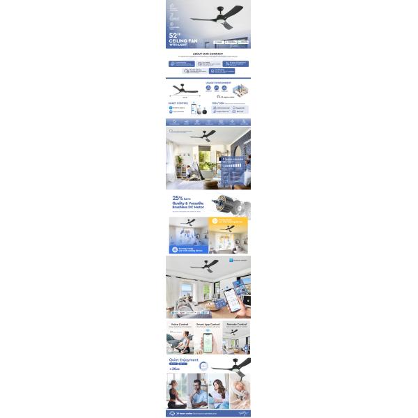 Effortless Control – Adjust fan speed and lighting with a 6-speed remote, or enjoy smart control options via app and voice assistants.